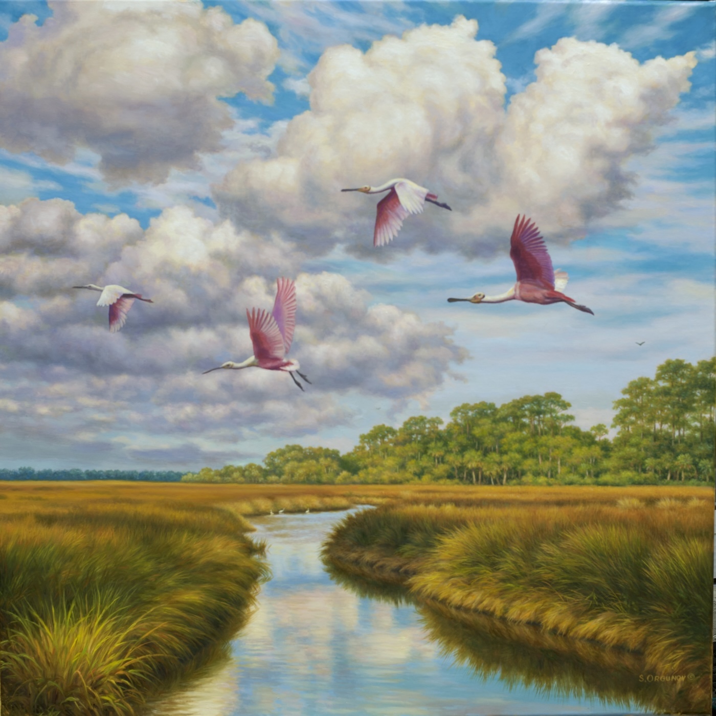 Oil Painting on Linen. 30″x 30″. Framed